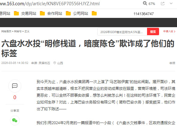 如果把今天的六盘水水投代进去,其实是很合适的,所以我们总感觉到“马艺珈伊案”二年过去了,六盘水水投依然我行我素,甚至通过删文章的卑劣手段想封住我们的嘴,隐藏事实真相,瞒山过海,来欺诈民营企业,想把民营企业的血汗钱剥夺一空,这在当今社会是行不通的。六盘水水投集团公司过了一个欢快的春节,而巴安水务呢?我们只能在被窝里默默流泪,勉强熬过这寒冷、饥饿的春节。这个春节属于六盘水水投,但他们没有想到,熬过一个冬天穷汉子将会满眼血青,要与水投公司力辩事实。我们将拼尽一丝力气,直到最后。